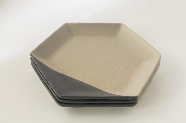 パンプレート、取皿、六角豆皿と重ねて。