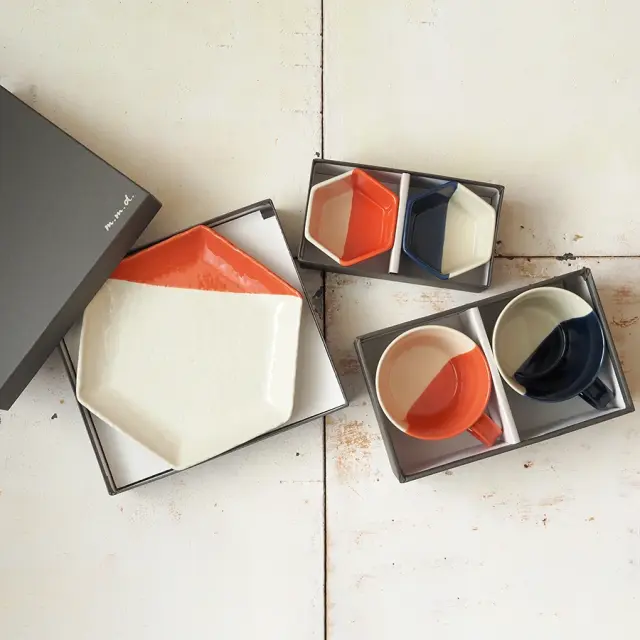 写真上から右回りに、1.マルチカップ、2.パンプレート、3.マグカップをそれぞれ専用のボックスに入れてお送りします。