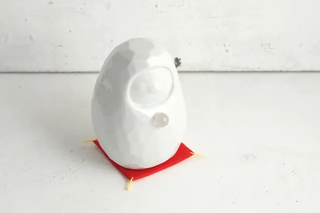 この質感を磁器で再現することで、陶磁器でありながら柔らかな手仕事の息遣いを感じられるだるまに仕上がりました。