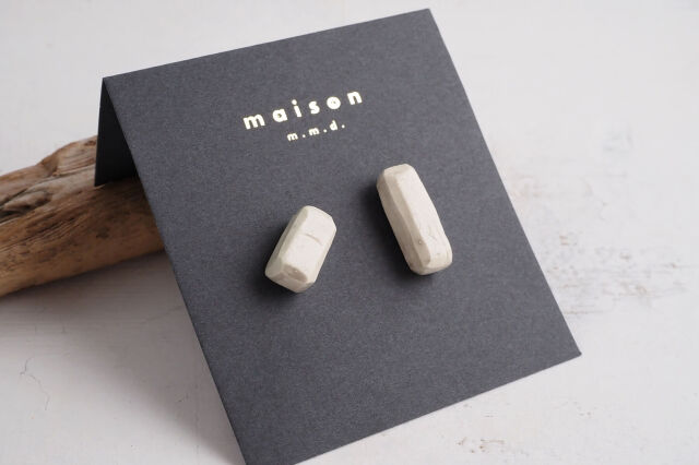 四角や丸など幾何学模様をモチーフにした、m.m.d. オリジナルセトえるアクセサリー「object line」です。 なじみのあるシンプルなかたちだからこそ、陶磁器ならではの表情のある風合いが生まれました。