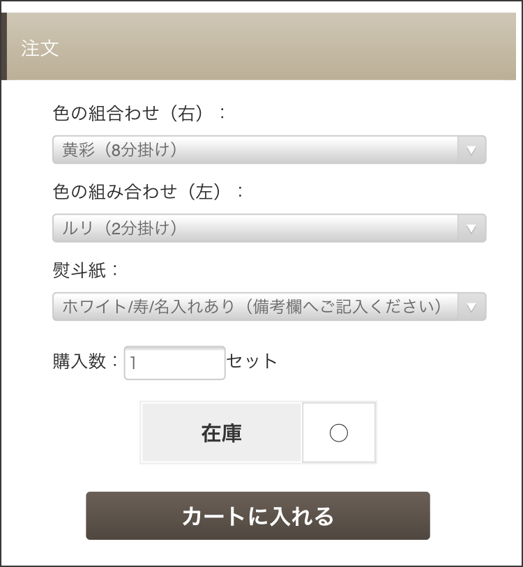 注文画面の備考欄からご入力いただくか、注文後、当店からご連絡差し上げた際にお申し付けください。