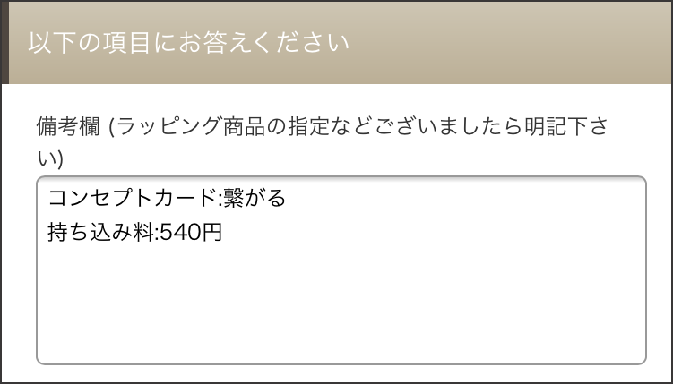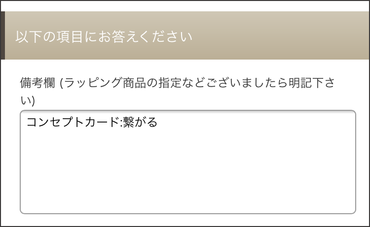 またコンセプトカードや、商品の組み合わせ、お熨斗についてのご要望などある際は、