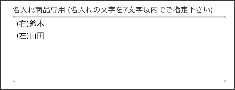引き出物の場合、一般的には右に新郎様・左に新婦様のお名前をお入れするケースが多いです。