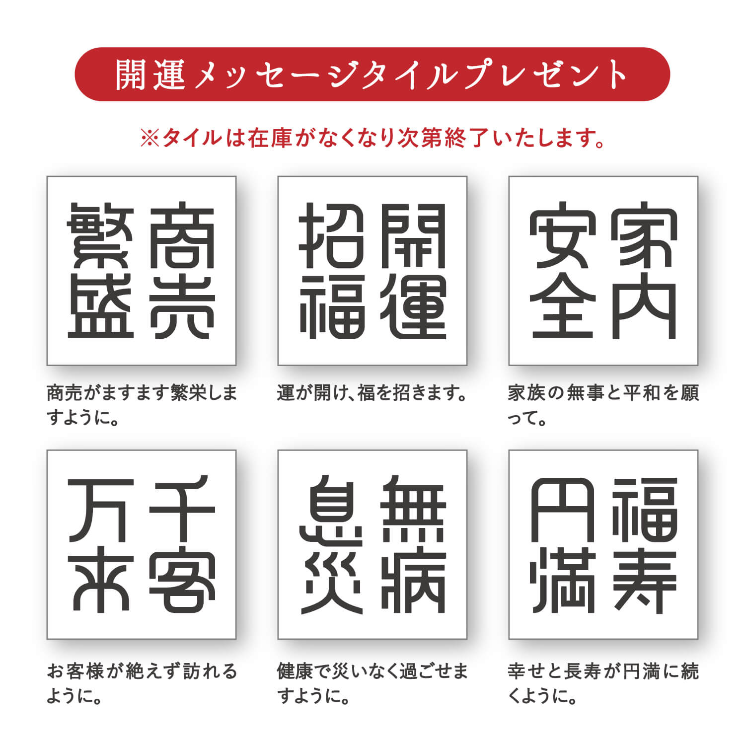 期間中にだるまをご購入いただいた方へ、“開運メッセージタイル”をおひとつプレゼント!