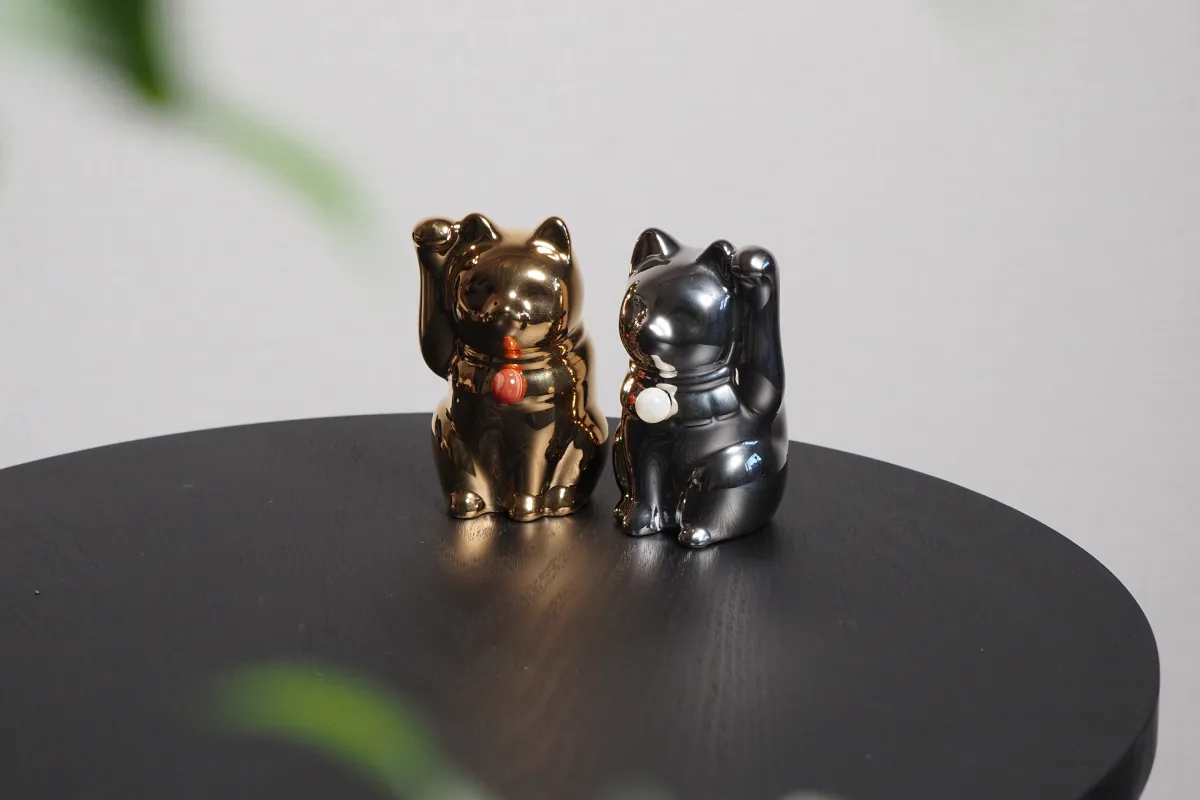 モダンなデザインでインテリアにも馴染む、陶器の置物「Jeramic MANEKINEKO」。