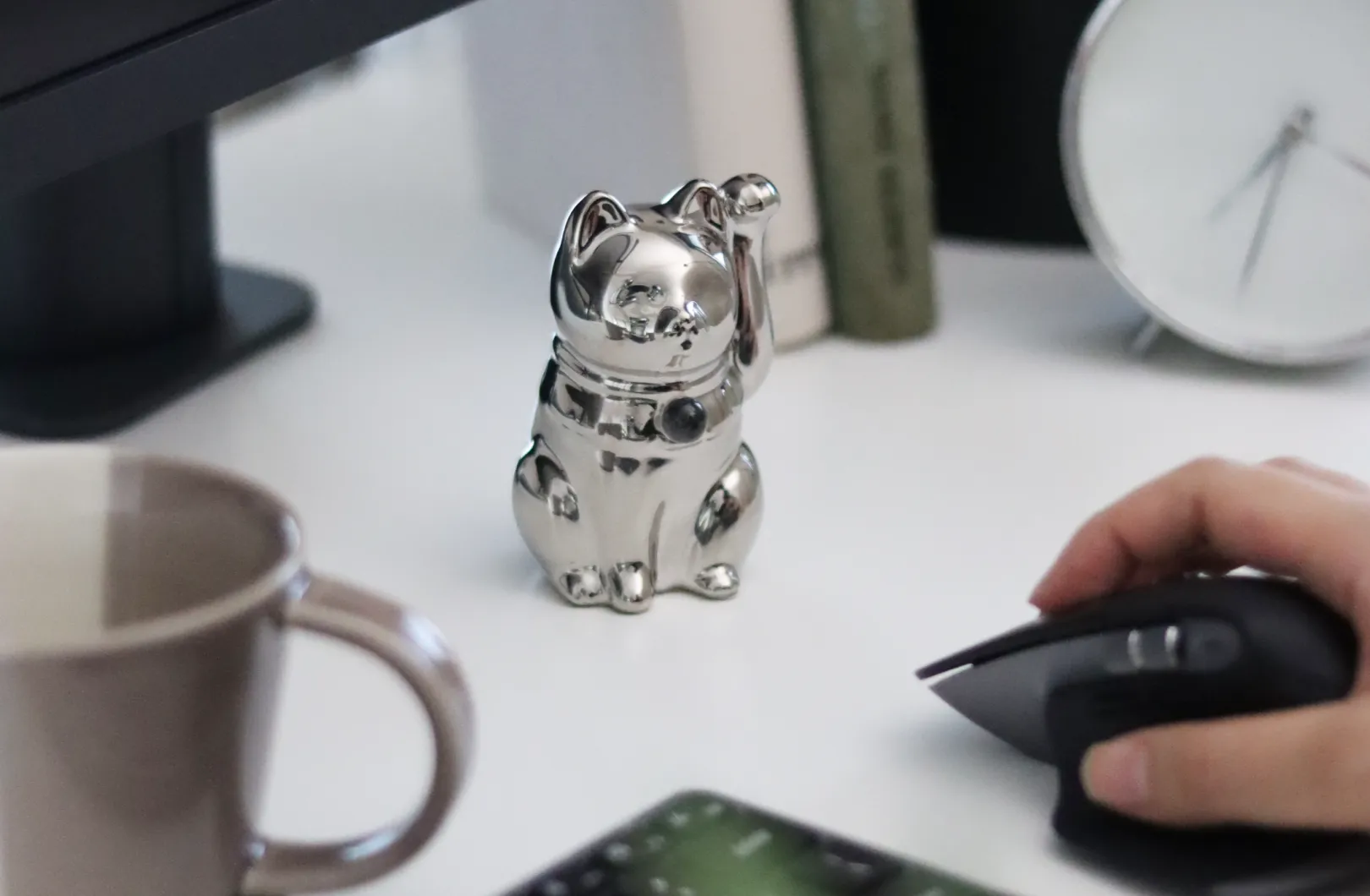 モダンなデザインでインテリアにも馴染む、陶器の置物「Jeramic MANEKINEKO」(ジェラミック招き猫)。