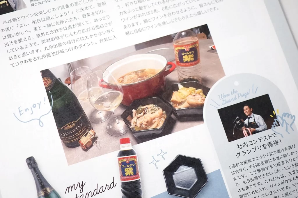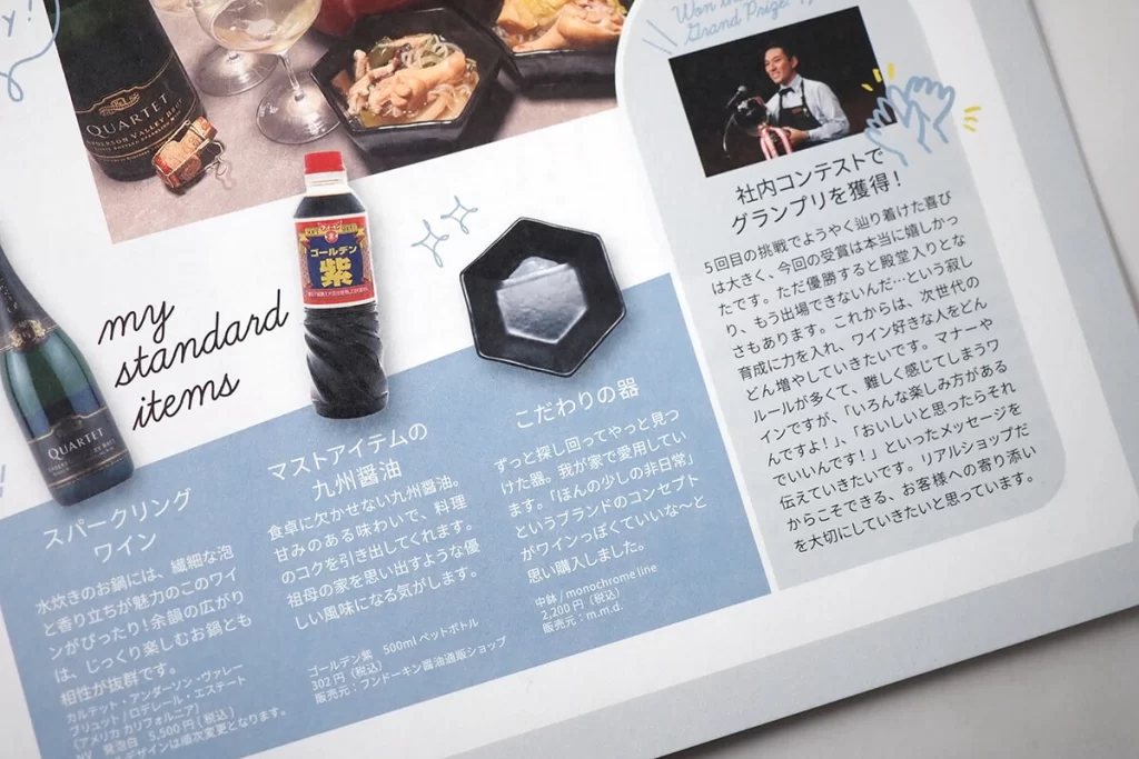誌面では、「わたしの定番」というスタッフのおすすめのワインと合わせる定番アイテムの紹介で、弊社のアイテムについてご紹介いただきました。