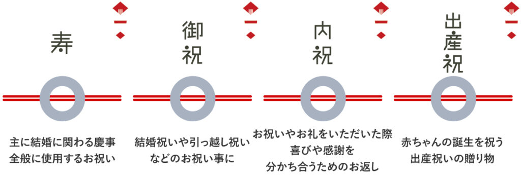 これまでご用意していたのは、「寿・御祝・内祝・出産祝」の4種類でした。