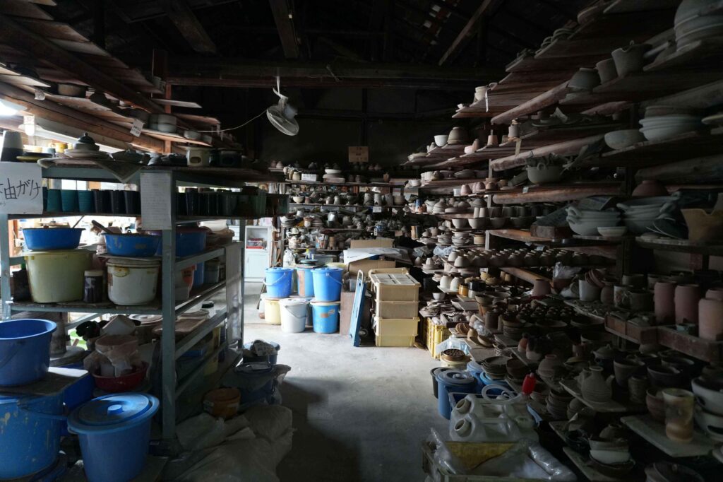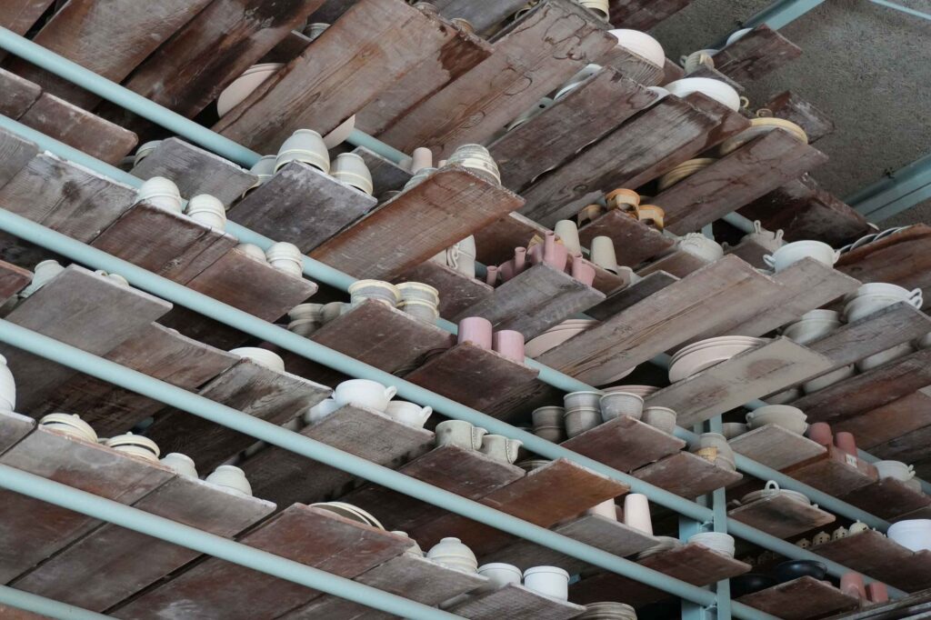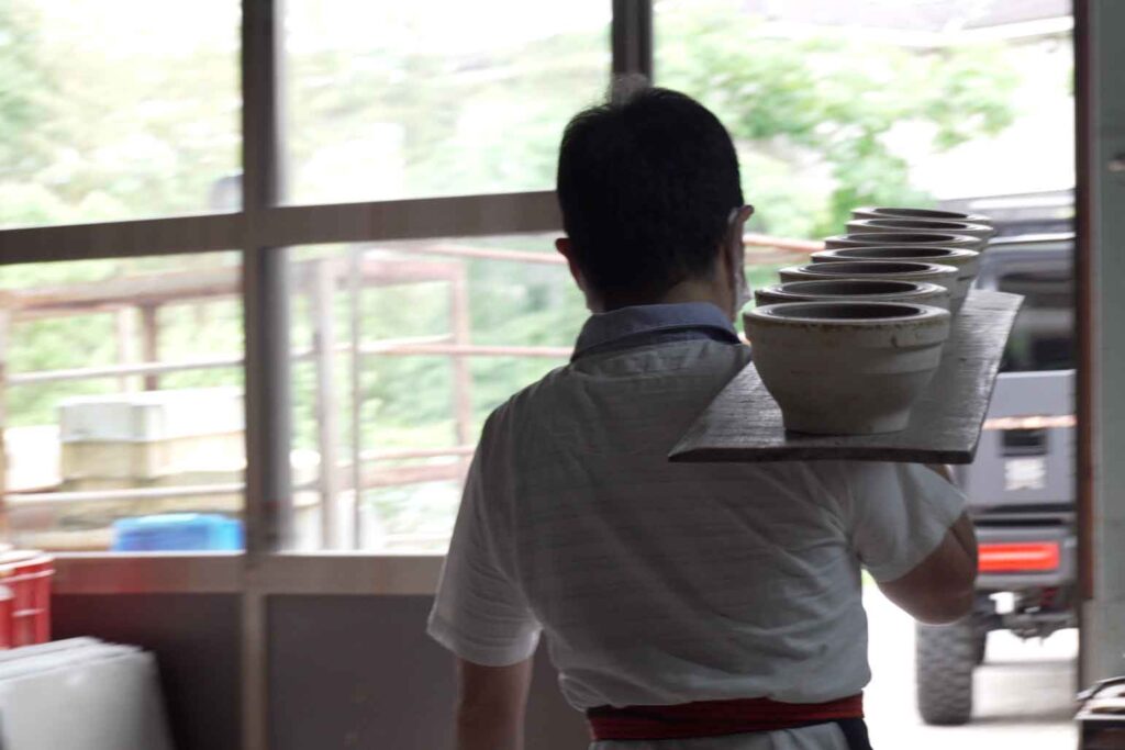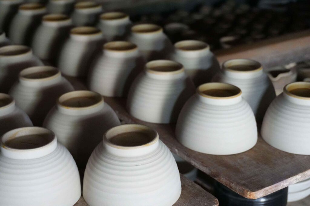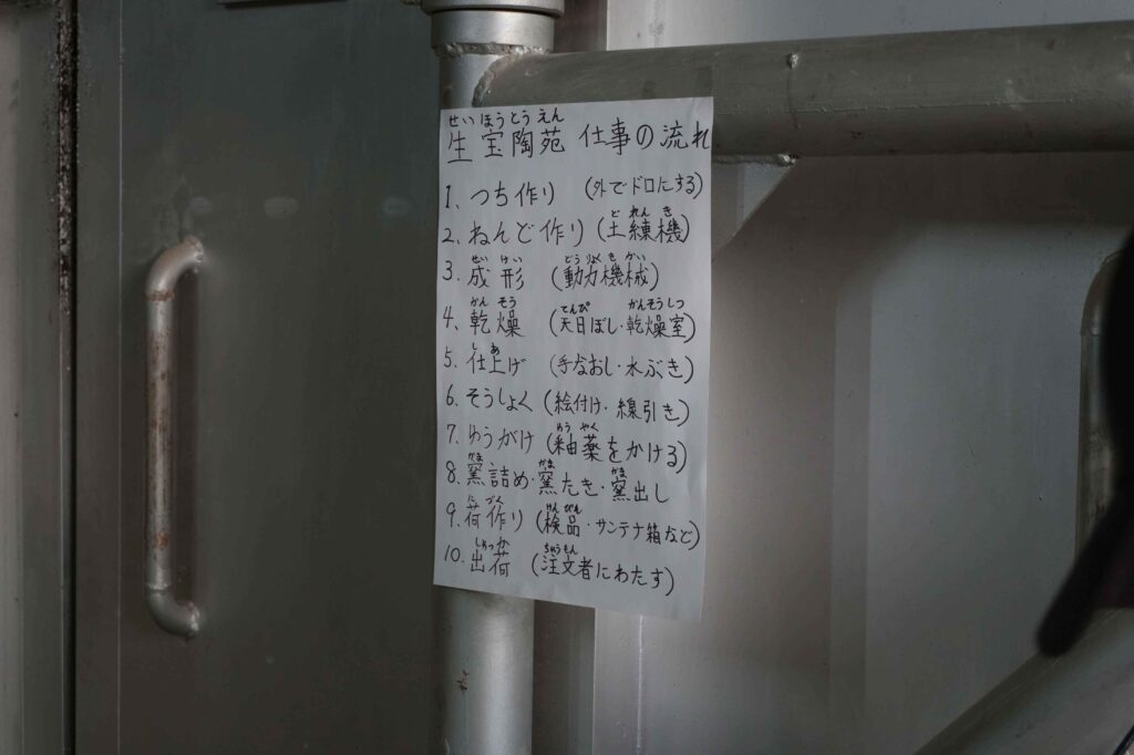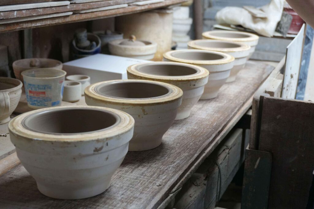 生宝陶苑の工房では、土づくりから成形、釉薬がけ、焼成まで、すべての工程が一貫して行われています。分業や外注が一般的になっている現代において、これはとても貴重なことです。