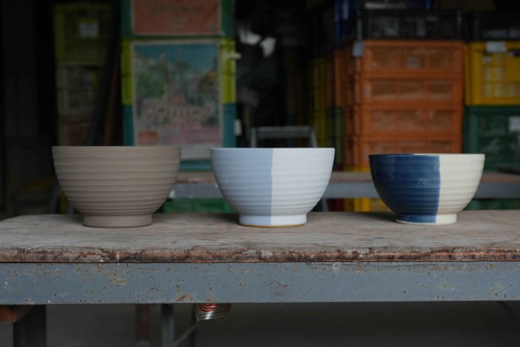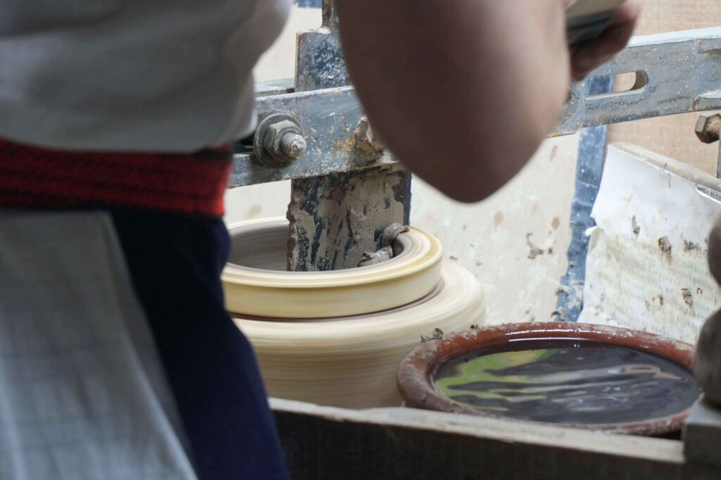 m.m.d.のアイテムを製造してくださる窯元のひとつで、陶器をメインに、「水ゴテ」と呼ばれる動力成形は1つ1つ手で仕上げる、まさに手しごとです。